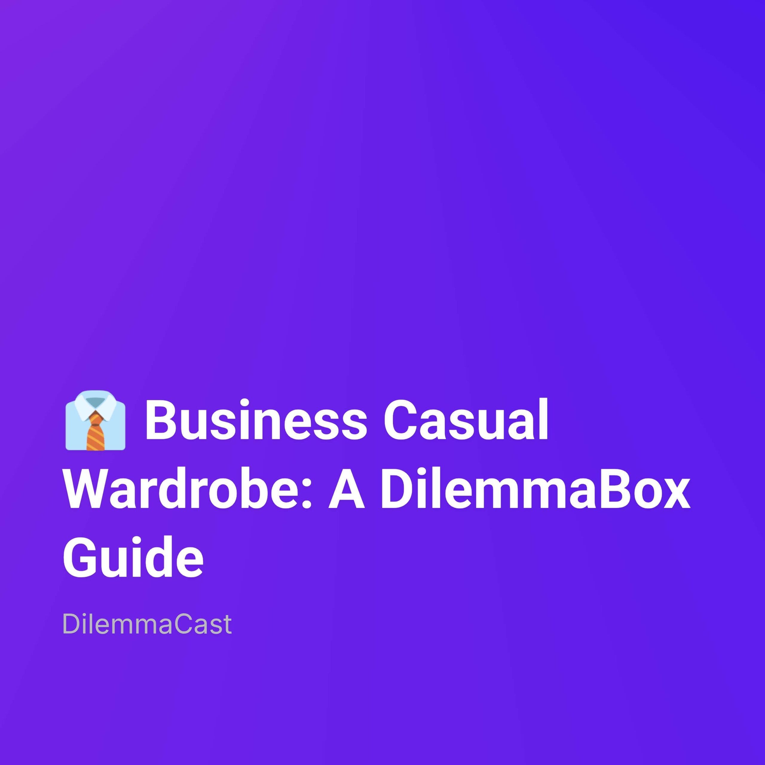 Navigate the ever-evolving world of business casual with insights from the DilemmaBox guide! This track explores the complexities of modern office attire, offering practical advice on building a versatile wardrobe, understanding workplace culture, and balancing professionalism with personal style. Featuring the unique “Would You Rather” approach, we dive into real-world scenarios to help you make confident and informed fashion choices for your professional life. Learn the key essentials, how to adapt for different seasons and industries, and embrace the changing landscape of business casual.
